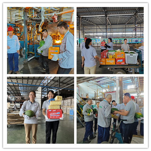 由于曜暉所處行業(yè)比較特殊,從原料粉末、熔化、玻璃液到成品,整個生產(chǎn)流程都需在高溫環(huán)境下實現(xiàn)。合影結(jié)束后,黨員代表深入車間現(xiàn)場開展迎“七一”送清涼活動,將濃濃關(guān)懷送到職工心坎上,代表們來到車間,把清涼的大西瓜、飲料、菊花茶等防暑降溫物品送到員工手中,為他們帶去絲絲涼意。雖然工作環(huán)境高溫悶熱,但工人們認(rèn)真積極工作的態(tài)度始終如一,令人敬佩。